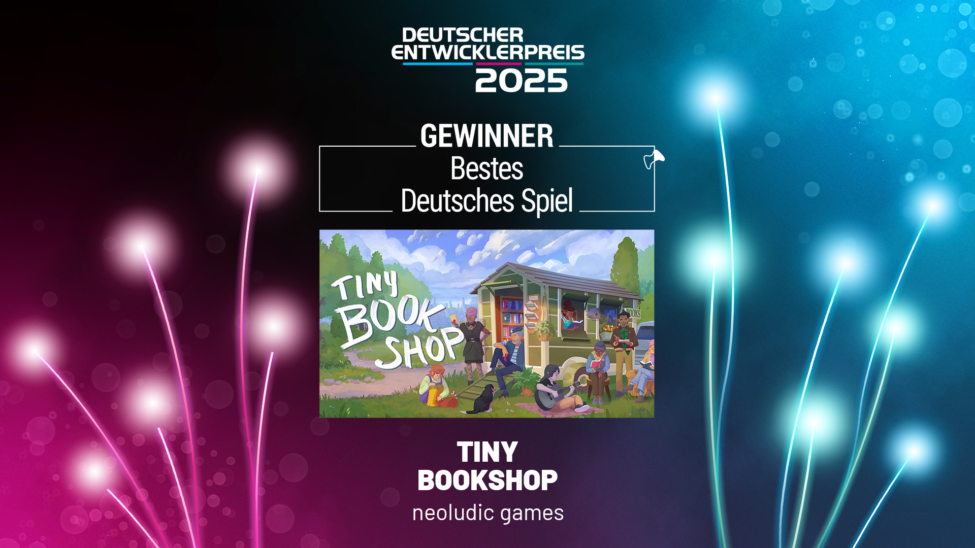 Aus insgesamt 244 Einreichungen haben 175 Jurorinnen und Juroren die besten Games und Teams in 14 Kategorien ausgewählt. Strahlender Sieger des Abends war Neoludic Games mit Tiny Bookshop. Neben der Königskategorie „Bestes Deutsches Spiel“ gewann das Studio auch in den Kategorien „Bestes Indie Game“ und „Beste Grafik“. In dem charmantenStory- und Management-Spiel zieht man in eine Küstenstadt und betreibt einen kleinen Buchladen. Der Titel ist seit August 2025 erhältlich und wurde bereits in den ersten vier Wochen über 300.000-mal verkauft. In The Darkest Files von PaintbucketGames aus Berlin schlüpft man in die Rolle einer Staatsanwältin, die im Deutschland der 1950er Jahre Jagd auf ehemalige Nazis macht. Das Adventure Game gewann in den Kategorien „Bestes Gamedesign“ und „Bestes Game Beyond Entertainment“. Das Berliner Team von Toukana Interactive wurde als „Studio des Jahres“ ausgezeichnet.